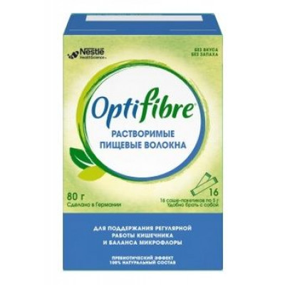 Оптифайбер® – 100% натуральный продукт для поддержания комфортной и регулярной работы кишечника, состоит из полностью растворимых пищевых волокон. Пищевые волокна, из которых состоит Optifibre®, не раздражают кишечник и не вызывают привыкания. Пищевые волокна «Оптифайбер®» (Optifibre®) просто и удобно применять - не обладают вкусом, запахом и полностью растворимы. Продукт можно добавлять в любую еду, горячие или холодные напитки, при этом их вкус, запах и консистенция не изменятся. Подходит для регулярного и длительного применения.