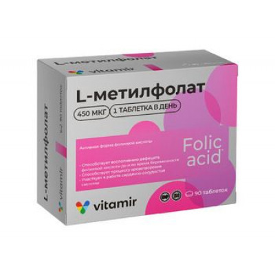 L-МЕТИЛФОЛАТ 165МГ. №90 ТАБ. П/О /КВАДРАТ-С/