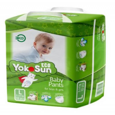 Одноразовые детские подгузники-трусики YokoSun Eco размер L (9-14 кг), 12 шт.