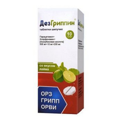 • ДЕЗГРИППИН 500МГ.+10МГ.+200МГ. ЛАЙМ №10 ШИП.ТАБ.