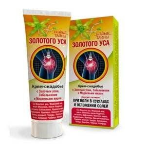 Состав крем-снадобья на основе сока Золотого уса усилен экстрактом сабельника и медвежьим жиром. Данный комплекс является оптимальным для восстановления и поддержания функционального состояния опорно-двигательного аппарата, нормализует внутриклеточный кальциевый обмен.
